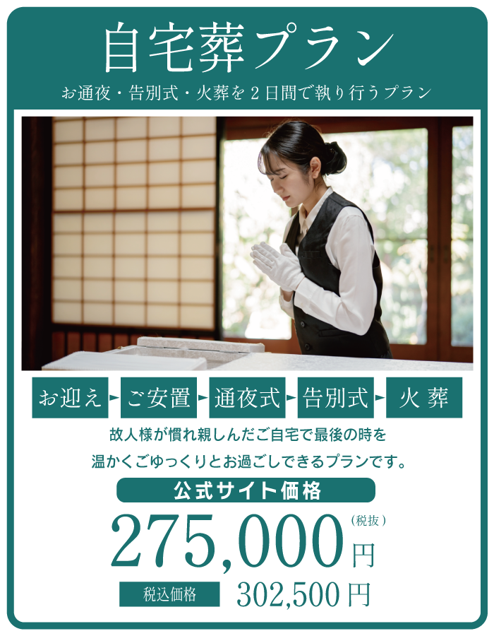 ご自宅でご葬儀をされたいご家族・ご親族様、移動のご負担を少なくされたい方向けの